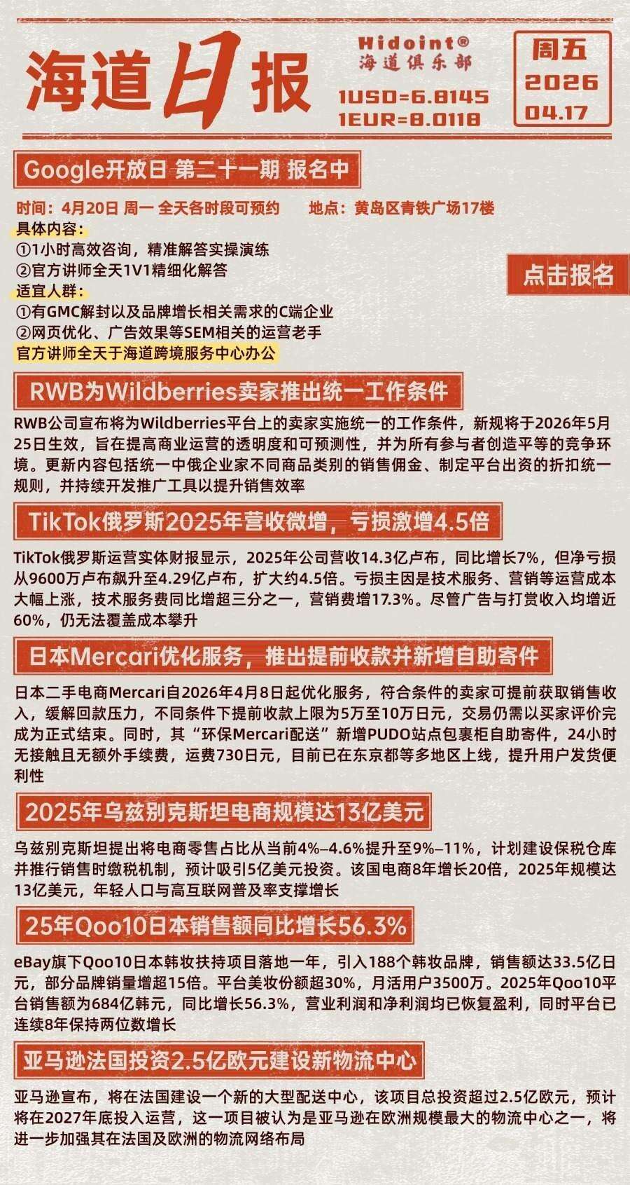 第0417期:亚马逊法国投资2.5亿欧元建设新物流中心